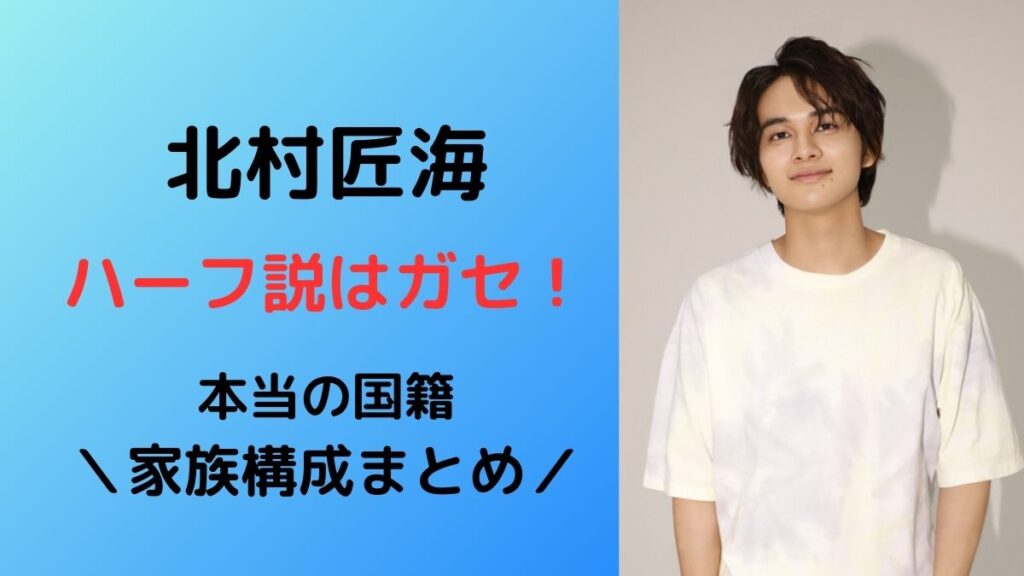 俳優だけでなく、モデルや歌手と幅広い活躍で人気の北村匠海さん! 北村匠海さんは日本人離れした顔立ちからハーフだと思ったことはありませんか? そこで今回は北村匠海さんはハーフなのか、本当の国籍や家族構成まで深掘りしていきます! <この記事でわ... -